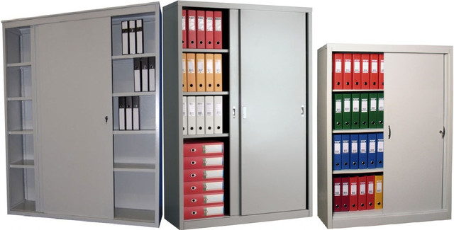 Рассматриваемая разновидность мебели из металла применяется для хранения больших объемов документации. Современные бухгалтерские шкафы бывают одно-, двух- и многосекционные, а также есть варианты с полками и без них. Есть модели с несколькими секциями, что позволяет нескольким сотрудникам использовать металлическую мебель для своих нужд одновременно.